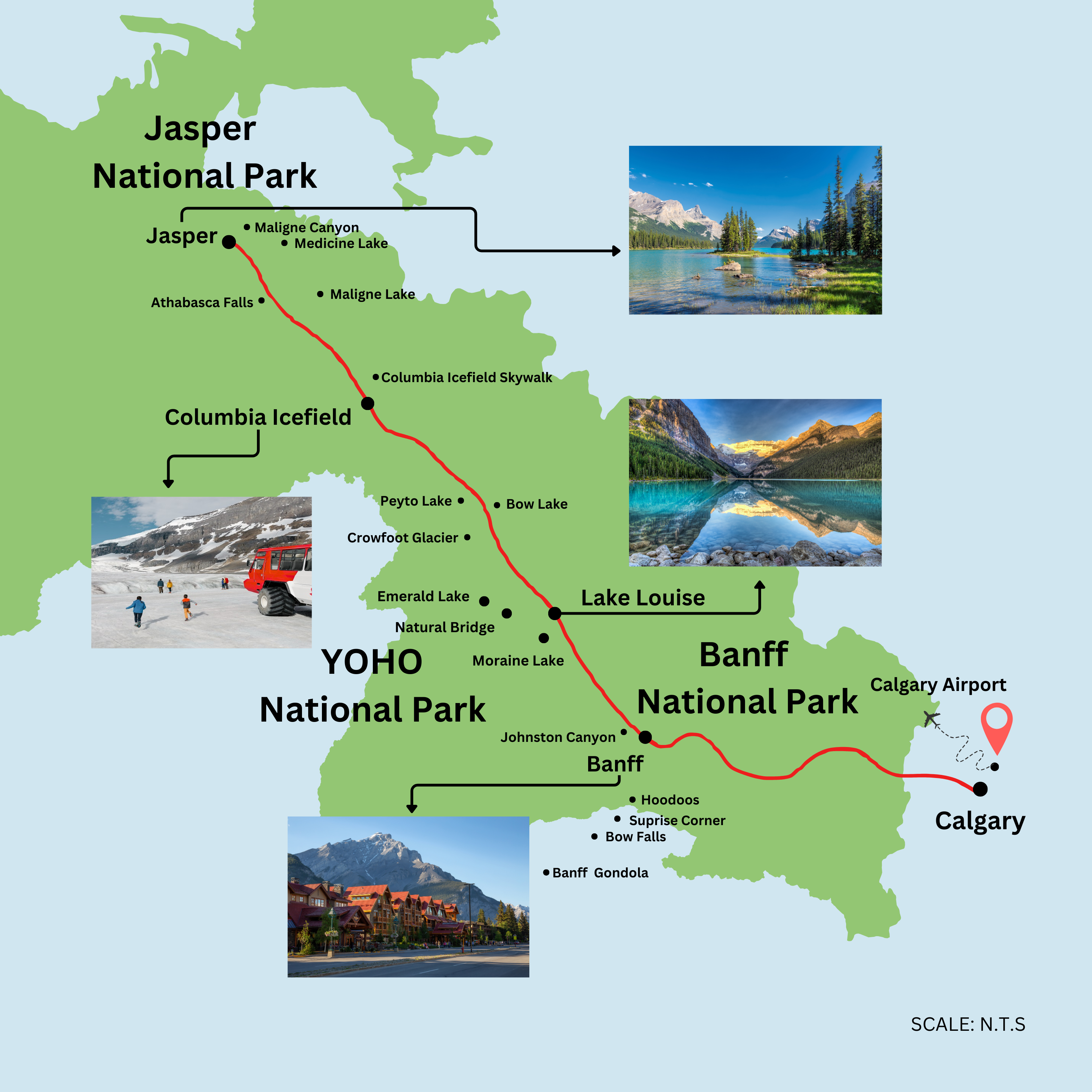 路线名称:加拿大西部落基山深度5日游:班夫+贾斯珀+优鹤国家公园(卡尔加里往返|含接送机)